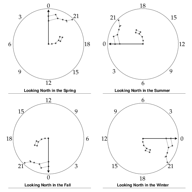 이처럼 북두칠성의 위치를 통해 우리는 계절을 알 수 있다.