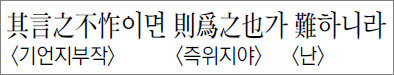 하지만 한나라 때 馬融(마융)은, 안에 내실이 있으면 말해도 부끄럽지 않을 터인데 내실을 쌓아가는 자는 그렇게 하기가 쉽지 않다는 점을 명심하라는 뜻으로 풀이했다. 주자는 則을 조건-결과의 접속사로 보았으나 마융은 주제화 어조사로 본 것이다. 정약용은 마융을 지지했다.