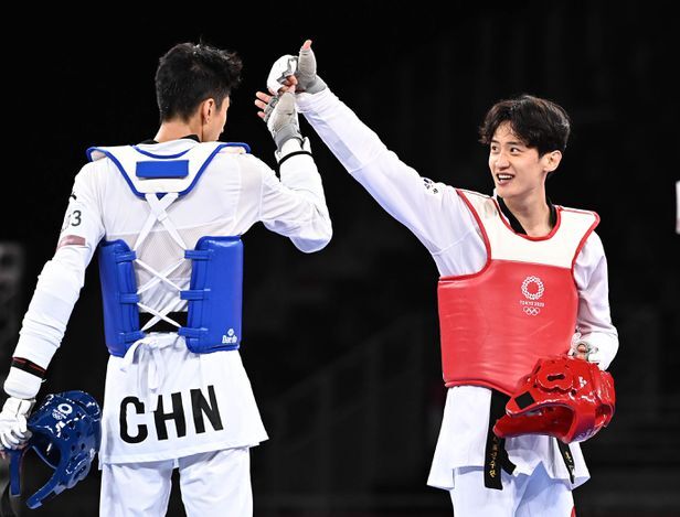 이대훈 선수가 25일 일본 지바 마쿠하리 메세 A홀 경기장에서 열린 68kg이하급 남자태권도 동메달 결정전에서 패한 후 상대선수에게 인사하고 있다. 2021.07.25 지바=이태경 기자
