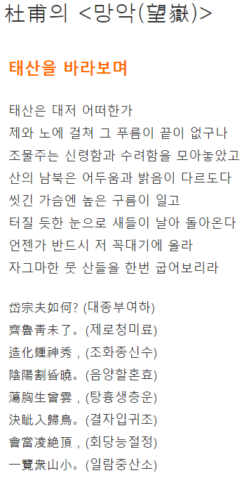 望嶽 / 태산을 바라보며