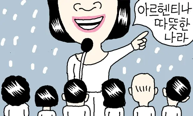 ▶아르헨티나 출신 프란치스코 교황의 방북과 관련해 박경미 청와대 대변인이 “따뜻한 나라 출신이기 때문에 겨울에는 움직이기 어렵다”고 말해 국제 망신을 샀다. 이 발언을 두고 미국의소리(VOA) 방송에서 “아르헨티나에 스키장이 있다는 것을 아느냐”고 했다. 한국과 정확히 지구 반대편에 있는 아르헨티나는 사계절이 있는 나라다. 세계 8위 면적으로 남북 최장 거리가 3700㎞쯤 되니 아열대, 온대, 건조, 한대 기후대에 다 걸쳐 있기도 하다. 그런 나라를 남반구에 있다고 ‘따뜻한 나라’라고 한다. 아르헨티나에 광범위하게 펼쳐져 있는 파타고니아 지역에 가 본 사람이 ‘따뜻한 나라’ 얘기를 들었다면 실소를 금치 못했을 것이다.