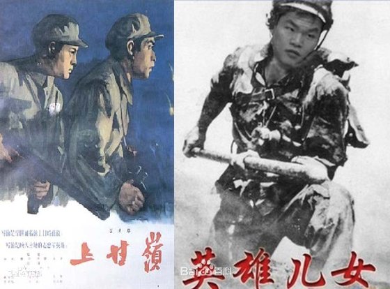 마오쩌둥 집권기의 대표적 항미원조 영화 '상감령'(왼쪽)과 '영웅아녀'의 포스터.