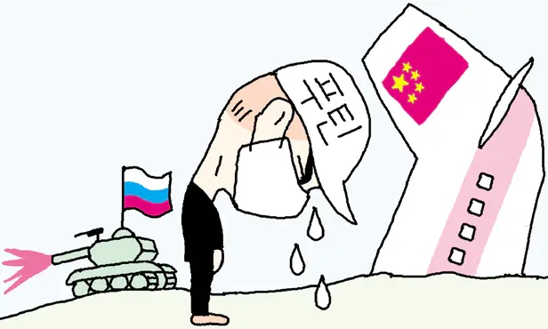 ▶아무리 그렇다 해도 푸틴이 “가족과 친구를 잃은 사람들의 슬픔”을 말하다니 소름이 끼친다. 푸틴의 우크라이나 침공으로 사망한 러시아 군인만 1만명에 육박한다. 우크라이나 민간인 희생은 통계도 내기 어렵다. 난민만 이미 수백만명이다. 벌벌 떠는 어린이들 모습을 보면 가슴이 미어진다. 푸틴의 중국 비행기 추락사 애도는 21세기 최악의 ‘내로남불’일 것이다.