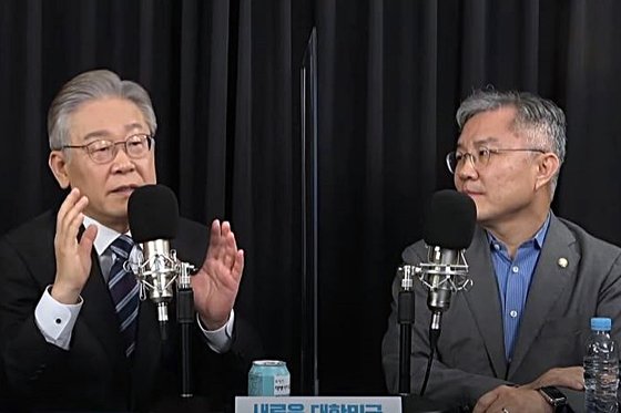 지난해 10월 이재명 민주당 후보는 열린민주당 유튜브채널에서 최강욱 열린민주당 대표(오른쪽) 등과 대담을 했다. 당시 열린민주당은 '검수완박' 기조를 강조했다. [유튜브캡처]