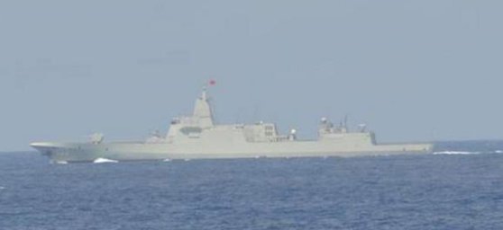 지난해 3월 취역한 중국 해군 1만톤급 최신 구축함인 라싸함(선체번호 102)이 21일 일본 도쿄도 남부 이즈 제도를 통과해 서진하고 있다. [사진=일본 방위성]
