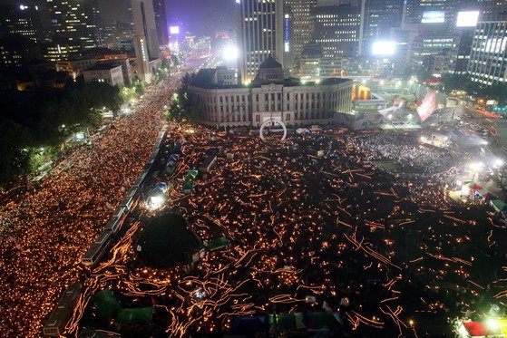 서울 프라자 호텔 14층 (22층 건물) 객실에서 내려다본 2008년 6월 10일 촛불집회 전경. [사진공동취재단]