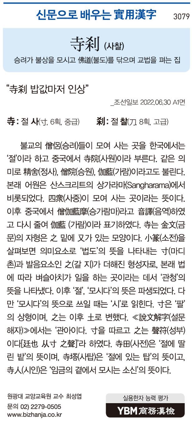 [신문으로 배우는 실용한자] 사찰(寺刹)