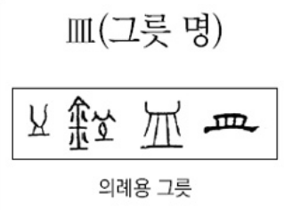 · 皿화로 속의 灬불을 손에 부젓가락을 잡고 휘젓는 모양의 글자다.