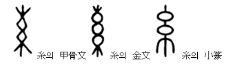 糸(가는 실 멱, 실 사)는 실을 서로 엮은 것으로 실을 타래지은 모양을 그린 것이다. 즉, 가늘고 약한 실오라기들이 함께 고여서 보다 강한 실로 바뀌는 과정을 보여주고 있다.
