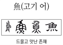 참고로 魚는 물고기를 잡는 행위는 물론 어부를 뜻하기도 하며, 이후에 ‘고기 잡을 어’로써 동사로 쓰이기도 한다.