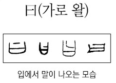 曰(가로 왈)은 口(입 구)에 가로획을 더하여 입에서 ‘말’이 나오는 모습을 그렸다.