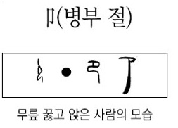 卩(병부 절)은 갑골문에서 꿇어앉은 사람의 모습이다.
