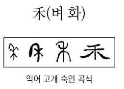 禾(벼 화)는 익어서 고개를 숙이고 있는 벼의 모습을 그린 글자다.