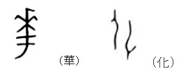 이러한 華(꽃 화)가 ‘화려하다, 부귀영화처럼 빛나다, 좋다’ 등의 다른 뜻으로 쓰이게 되자 형성자인 花(꽃 화)자를 또 만들었다. 化(될 화)는 서 있는 사람과 누워있는(거꾸로 선) 사람을 그려서 사람이 ‘바뀌다, (변하게) 되다’의 의미를 가진다. 여기에 艸(풀 초)를 더해서 풀이 바뀐 ‘꽃’의 의미가 되었다.