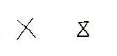 五(다섯 오)의 갑골문 형태는 마치 로마자처럼 되어 있는데, 산대를 계속 나열만 할 수는 없기 때문에 일정한 지점에서 다른 표시를 하게 된 것이다.