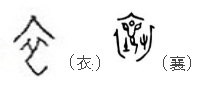 衣(옷 의) 사이에 다른 글자가 들어간 경우도 있다. 保(지킬 보)의 의미가 강조되어 넓은 옷자락을 나타내거나 포상으로 주는 옷 의미의 褒(기릴 포) 자와, 마음속에 무언가 딴 마음을 埶(재주 예, 심을 예) 품고 있는 褻(더러울 설) 자가 그것이다. 褒賞(포상), 猥褻(외설) 등의 글자에 사용된다.