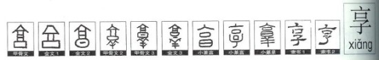 亨(형통할 형)도 ‘제를 올리다’, ‘드리다’의 뜻을 동일하게 가진다. 이후 ‘누리다’와 비슷하게 모든 일이 뜻과 같이 잘 된다는 ‘형통하다’의 의미로 확대된 것이다.